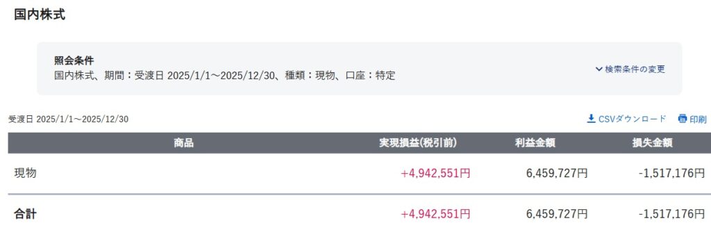 ・1年間の株式譲渡損益を確認して、FIRE後の不労所得の参考とする