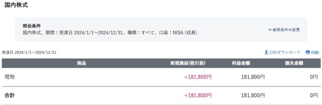 ・1年間の株式譲渡損益を確認して、FIRE後の不労所得の参考とする